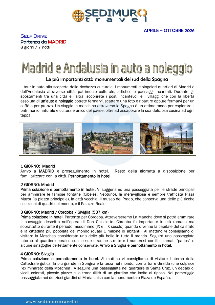 Madrid e Andalusia in auto a noleggio da Madrid 8 giorni