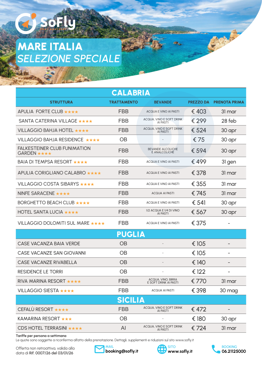 Speciale Anteprima Mare Italia - Estate '26 a partire da € 375 a persona