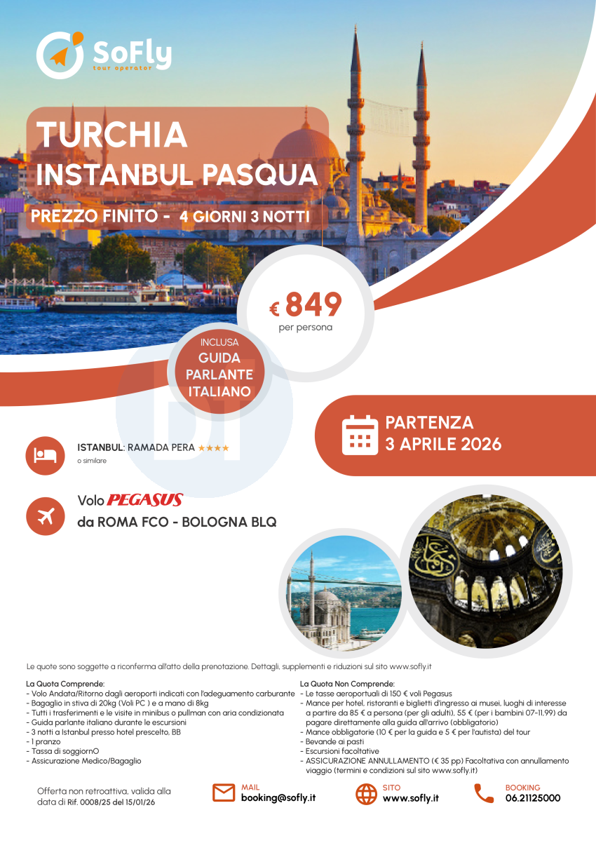Turchia Pasqua a Istanbul con Volo da Roma e Bologna a partire da € 849 a persona