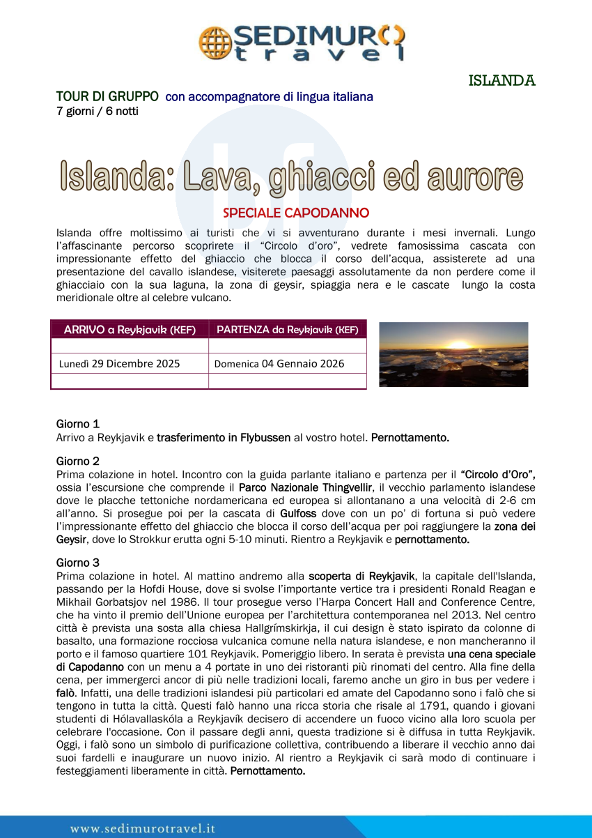 Islanda, lava ghiacci ed aurore da Reykjavik speciale Capodanno 7 giorni