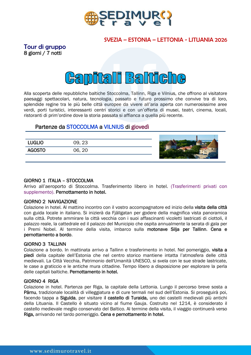 Capitali Baltiche da Stoccolma a Vilnius 8 giorni