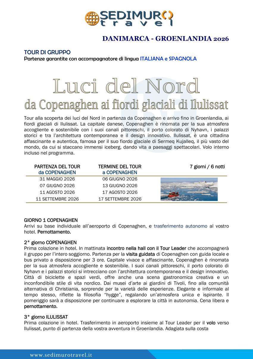 Luci del Nord da Copenaghen ai fiordi glaciali di Ilulissat 7 giorni