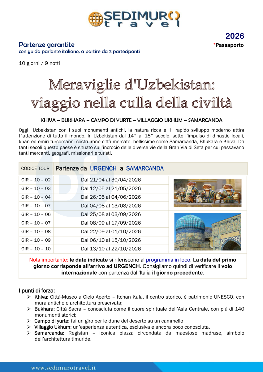Meraviglie d’Uzbekistan, viaggio nella culla della civiltà da Urgench a Samarcanda 10 giorni